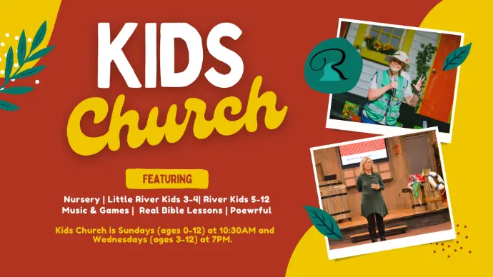 Kids Church is Sundays (ages 0-12) at 10:30AM and Wednesdays (ages 3-12) at 7PM.