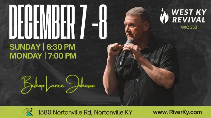 West Kentucky Revival services are at The River Sundays at 6:30PM and Mondays at 7:00PM. Prayer begins 45 minutes before service.
